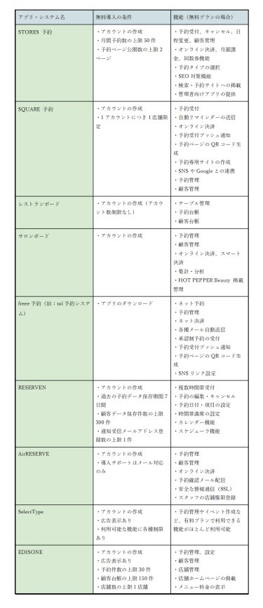機能はアプリやプランによって異なります。自社の店舗に必要な機能をあらかじめピックアップしておき、予算の範囲内で選びましょう。
